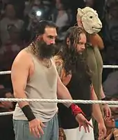 ![]() The original members of The Wyatt Family from left to right: Erick Rowan, Bray Wyatt, and Luke Harper in April 2014 | |