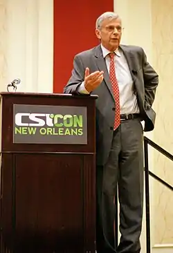 While filming was underway for the seventh season, many members of the crew felt that the show had entered into its final season. Executive producer Frank Spotnitz later explained, "There was a pretty strong sentiment inside and outside the show that it was time to call it a day."[17] Because the show's producers felt that the show was nearing its end, many story arcs were ended in the season. The fourth episode, "Millennium" was written as a way to bring closure to the recently cancelled Carter-created series of the same name.[18][19] The episode features Lance Henriksen reprising his role as Frank for the last time.[20] The eleventh episode, "Closure", features Mulder discovering what happened to his sister. The idea to close the story arc received mixed reactions from various production and crew members. However, many of the show's producers realized that the time had come to answer one of the show's biggest questions. Paul Rabwin noted that, "It's been seven years. I don't think any of us are going to miss Samantha Mulder. That device and motivation were very strong in the early years of the show. But as the years have gone by, the speculation kind of melted away."[21] As the season progressed, however, the idea of producing another season emerged. Paul Rabwin explained that, "we found ourselves starting to get energized again. [...] As we got toward the end of the season, everyone was kind of hopeful."[22]