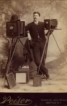 Theodore E. Peiser (1853 - 1922) was an early photographer in Seattle, Washington and the Pacific Northwest.[1] His studio and many of his photographs were lost in the Great Seattle Fire of 1889.[2] His surviving photographs include one of the few photographs of the Seattle skyline from Beacon Hill before the fire[3] as well as the Yesler-Leary Building in 1885, several years before it burned in the fire. He also captured the first and second Occidental Hotel buildings that preceded the Seattle Hotel and Sinking Ship. He also documented the debut of the first Seattle Street Railway horse-drawn streetcar in 1884 with mayor John Leary.
