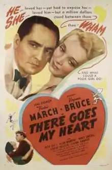 There Goes My Heart is a 1938 romantic comedy film directed by Norman Z. McLeod and starring Virginia Bruce as a wealthy heiress who goes to work under an alias at a department store owned by her grandfather. Fredric March plays the reporter who tracks her down. The film is based on a story by Ed Sullivan, better known for his long-running television show. The film was nominated for a Best Score Oscar for Marvin Hatley.[1]