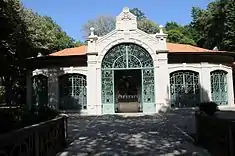 On 5 March 1904, the Viscount of Peso solicited permission to explore the mineral water springs on her property. Yet, on 11 November 1904, a dispatch delivered to the Empresa Santos, Sobral & Co. a reserved perimeter of 15 hectares for the exploration of mineral springs, allowing the company to begin its expansion.[1] These surveys were concluded in August 1906: by 1907, the flow of mineral water had expanded from 2,482 litres (656 US gal) per day (1904) to 8,000 litres (2,100 US gal) per day. The company decided to construct a pavilion in order to substitute the pump room that existed.[1] This work, begun in 1909, was under the direction of engineer Couto dos Santos, for a cost of 43 contos, with testing of the water undertaken by professor Charles Lepierre and Dr. António Cruz Magalhães.[1]