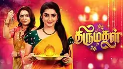 Thirumagal is an 2020 Tamil-language drama airing on Sun TV which premiered on 12 October 2020.[1] The show stars Harika Sadu, Surendar Shanmugam, Sushma Nair and Shamitha Shreekumar.[2] The serial is a remake of the 2015 Telugu TV series Atho Athamma Kuthuro that was aired on GeminiTV.[3]