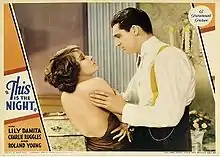 This Is the Night is a 1932 American pre-Code comedy film directed by Frank Tuttle, and starring Lili Damita, Charles Ruggles, Roland Young, Thelma Todd, and Cary Grant in his film debut. It was made by Paramount Pictures.