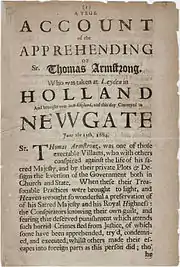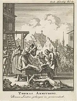 Sir Thomas Armstrong (c. 1633 Nijmegen – 20 June 1684 London) was an English army officer and Member of Parliament executed for treason.[1] His father, Colonel Sir Thomas Armstrong (died November 1662) fought in the 30 Years War in the Netherlands, was a royalist soldier during the English Civil War, and was twice imprisoned in the Tower of London by Oliver Cromwell during the Commonwealth.[2]