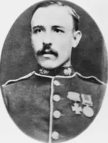 For conspicuous gallantry on the occasion of the sortie from Kandahar, on the 16th August, 1880, against the village of Deh Khoja, in having rescued and carried for a distance of over 200 yards, under the fire of the enemy, a wounded soldier, Private Massey, of the Royal Fusiliers, who had taken shelter in a blockhouse. Several times they were compelled to rest, but they persevered in bringing him to a place of safety.[4]