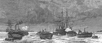 In addition to ministering to the Yahgan, Bridges was also called upon to serve the British community. On 26 April 1881, HMS Doterel suffered a massive explosion while it was anchored near Punta Arenas. The ship sank immediately, and 143 members of the crew were killed, most blown to pieces. There were 12 survivors.[17] Small boats set off from the harbor and other ships to aid survivors. Crews worked all afternoon to recover bodies; only three were recovered whole and the crews put the remains into boxes. Bridges presided over a mass funeral for the sailors on ships and boats in the harbour.[17]