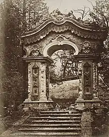 One of Child's most significant contributions to both 19th century photography and the study of Chinese architecture and history are his photographs of Yuanmingyuan – known in English as the Old Summer Palace – one of the most potent symbols of China's past.[12] Child’s images are among the earliest and most important photographic evidence of particular features at the significant historical site.[13] Child’s photograph of the Prince’s Porch is of particular importance. It is the only known photographic record of this architectural masterpiece.[13] Additional sites that Child photographed such as the Xiyang Lou and the Fountain Gate would be further destroyed in the Boxer War and subsequent conflicts.[14]