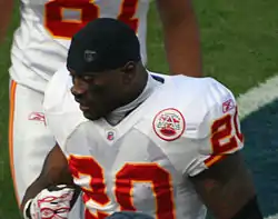 Thomas Jones (born August 19, 1978) is an American actor who performs as Thomas Q. Jones, and a former American football running back who played 12 seasons in the National Football League (NFL). He played college football for the University of Virginia. He was drafted by the Arizona Cardinals seventh overall in the 2000 NFL Draft, and played for the Tampa Bay Buccaneers in addition to the New York Jets, Chicago Bears and Kansas City Chiefs. He retired among the top 25 leading rushers in NFL history (currently 26th, after LeSean McCoy passed him[1]), and a member of the 10,000 rushing yards club. In September 2019 he was nominated for the Pro Football Hall of Fame Class of 2020.[2]