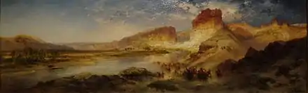 Moran along with Albert Bierstadt, Thomas Hill, and William Keith are sometimes referred to as belonging to the Rocky Mountain School of landscape painters because of all of the Western landscapes made by this group.[2]