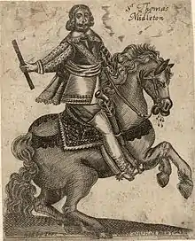 - Sir Thomas Myddelton, 1st Baronet (1624–1663), eldest son and heir, created a baronet in 1660. He was besieged by Lambert in Chirk Castle in August 1659, and left two sons, Sir Thomas Myddelton, 2nd Baronet (c. 1651–1684) MP for Denbigh, and Sir Richard Myddelton, 3rd Baronet (1655–1716), MP for Denbigh 1685–1716, both of whom succeeded in turn to the baronetcy. Sir Richard's son, Sir William Myddelton, 4th Baronet (1694–1718) died unmarried in 1718, when the baronetcy became extinct and the estates reverted to Robert Myddelton of Llysvassi, a son of the parliamentary general's third son Richard, from whom Robert Myddelton-Biddulph, later owner of Chirk Castle, traced descent.[3]