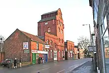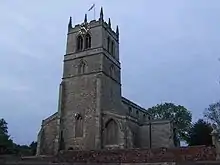 Notable buildings in the town include the parish church and Peel Hill Castle. The parish church consists of material from the 12th to 15th centuries with some later additions and repairs. It is a grade I listed structure,[7] and is dedicated to St Nicholas. Peel Hill Castle is the earthwork remains of a Norman motte built by the de Warenne family.
