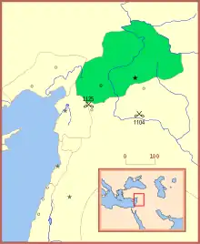 The Chronicle of Matthew of Edessa records that "Thoros son of Hethum" was installed as governor of Edessa by Tutush, who had defeated and killed emir Bouzan in the year 543 of the Armenia era (26 Feb. 1094 - 25 Feb. 1095).[2] According to Sturdza, Hethum [I] was descended from the Pahlavouni, an important family in Caucasian Armenia. He conquered land to the east of that conquered by his fellow Armenian Rupen. Steven Runciman calls Thoros the "son-in-law" of Gabriel of Melitene.[3]