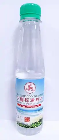Three Legs Cooling Water (simplified Chinese: 三脚标清热水) is a Traditional Chinese Medicine drink produced by Wen Ken Group. A flagship product of the company, the drink tastes like mineral water and has been around since 1937 when Wen Ken Group was first established.