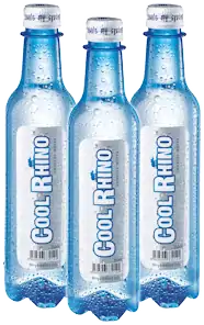 In 2008, Wen Ken Group launched a new and more modern version of their original Three Legs Cooling Water. The new drink, Cool Rhino, contains almost exactly the same contents as the original cooling water except for an extra ingredient, Calcitum.[3] This additional ingredient is said to enhance the cooling properties of the drink. Cool Rhino derives its name from a combination of the original Three Legs Cooling Water and the symbol of a rhino on the Malaysian version of the label.[3] The drink can also be frozen into ice cubes or be used as a mixer with other drinks.[3]