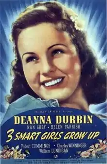 Three Smart Girls Grow Up is a 1939 American musical comedy film directed by Henry Koster, written by Felix Jackson and Bruce Manning, and starring Deanna Durbin, Nan Grey, and Helen Parrish.[3][4] Durbin and Grey reprise their roles from Three Smart Girls, and Parrish replaces Barbara Read in the role of the middle sister.[4] Durbin would reprise her role once more in Hers to Hold.