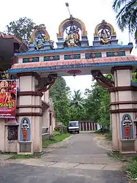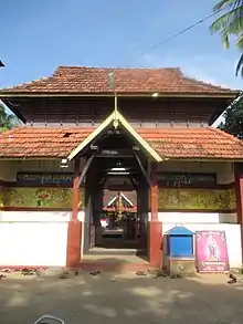The presiding deity in the temple is Athpudha Narayanan, who is also named as "Amirutha Narayanan". The presiding deity is sported in standing posture facing the east direction. His consort is Karpagavalli.[3] The temple is built in Kerala style architecture. The temple has a two storeyed gopuram or a gateway tower, with the upper storey having wooden trails covering the Kottupura, the hall of drum beating during festivals. A rectangular wall around the temple, called Kshetra-Madilluka pierced by the gateways, encloses all the shrines of the temple. The metal plated flagpost or Dwajasthambam and the Deepastamba, the light post, are located axial to the temple tower leading to the sanctum. Chuttuambalam is the outer pavilion located within the temple walls. The sactum and the associated hall is located in a rectangular structure called Nallambalam that has pillared halls and corridors.[4]