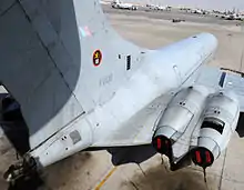 A simple and effective method is to reverse the direction of the exhaust stream of the jet engine and use the power of the engine itself to decelerate. Ideally, the reversed exhaust stream would be directed straight forward.[5] However, for aerodynamic reasons, this is not possible, and a 135° angle is taken, resulting in less effectiveness than would otherwise be possible. Thrust reversal can also be used in flight to reduce airspeed, though this is not common with modern aircraft.[6] There are three common types of thrust reversing systems used on jet engines: the target, clam-shell, and cold stream systems. Some propeller-driven aircraft equipped with variable-pitch propellers can reverse thrust by changing the pitch of their propeller blades. Most commercial jetliners have such devices, and it also has applications in military aviation.[5]