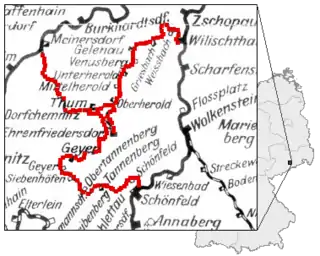 A landmark was the 180 m (590.6 ft) long and 35 m (114.8 ft) tall Greifenbach viaduct between Ehrenfriedersdorf and Geyer.