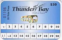 Thunder Bay Transit offers monthly, semester and family/group passes. These passes allow unlimited rides within the time period specified on the face of the card, so that pass holders do not need to use transfers to change buses.