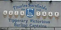 Thurles Sarsfields is a Tipperary GAA club which is located in County Tipperary, Ireland. Both hurling and Gaelic football are played in the "Mid-Tipperary" divisional competitions. The club is centred in the town of Thurles at Semple Stadium. The club was founded in 1881 and is the most honoured club in the history of the county championship with 36 County Titles.[1]
