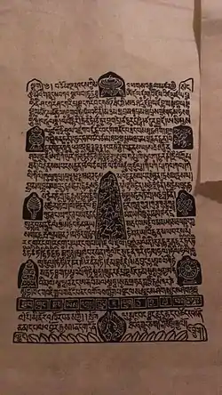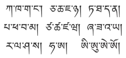 The script is closely linked to a broad ethnic Tibetan identity, spanning across areas in India, Nepal, Bhutan and Tibet.[5] The Tibetan script is of Indic origin and it is ancestral to the Limbu script, the Lepcha script[6] and the multilingual ʼPhags-pa script.[6]