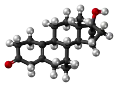 In spite of the preceding, others have held, as recently as 2011, that tibolone is converted into 7α-methylethinylestradiol in small quantities.[47][48] They have claimed that 19-nortestosterone derivatives like tibolone, due to lacking a C19 methyl group, indeed are not substrates of the classical aromatase enzyme, but instead are still transformed into the corresponding estrogens by other cytochrome P450 monooxygenases.[40][47][48] In accordance, the closely structurally related AAS trestolone (7α-methyl-19-nortestosterone or 17α-desethynyl-δ4-tibolone) has been found to be transformed into 7α-methylestradiol by human placental microsomes in vitro.[42][49] Also in accordance, considerably disproportionate formation of ethinylestradiol occurs when norethisterone is taken orally (and hence undergoes first-pass metabolism in the liver) relative to parenterally,[50][51] despite the absence of aromatase in the adult human liver.[48][52]
