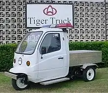 The Tiger Truck is a light utility truck sub-brand from Chinese manufacturer Chang'an. It belongs to a class of vehicles known as “mini-trucks,” “micro trucks,” “K trucks,” and "kei trucks”. The K is short for kei jidosha, Japanese for “light vehicle” and the name of a special class of vehicles subject to reduced taxation in Japan. In the United States, this class of vehicle is classified as a low speed vehicle as defined under CFR 49-571.500 and is limited to a top speed of 25 MPH. As such, it is only legal for off highway use and/or local road use.[1]