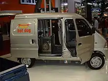 The Tiger Star model is an upgraded and more robust off-road utility truck than most off-road vehicles in its class.[3] The advanced Star class trucks feature robust electric drive, with a 48 volt, 5 kW motor mated with a five-speed transmission. All Tiger Trucks are California Air Resources Board certified. Original design was based on the Suzuki Every/ Suzuki Carry based Changan Star kei vans and kei trucks due to the licensed production by the Changan Suzuki joint venture in China.