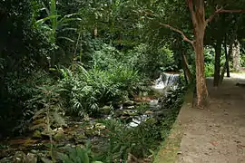 The Tijuca Forest is home to hundreds of species of plants and wildlife, many threatened by extinction, and found only in the Atlantic Rainforest (Mata Atlântica in Portuguese). The vegetation is so dense that scientists have estimated that ambient temperatures in surrounding areas have been lowered by up to 9 °C. The forest also contains some 30 waterfalls.[3]