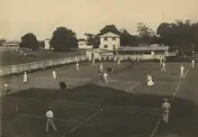 Colonialists on the tennis courts Government House in Lagos., ca.1910