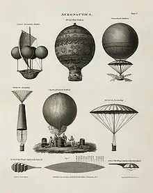 An 1818 technical illustration shows early balloon designs.