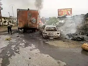 - On August 22, there was an arson attack against a road construction company in Bamenda.[78]