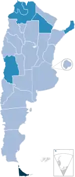 - 16 March: Nine new cases were confirmed by the national Ministry of Health in the City of Buenos Aires (5) and the provinces of Chaco (3) and Buenos Aires (1), bringing the total to 65.[51] Soon after in the night, the Governor of Chaco confirmed the provincial number of four more cases instead of three, bringing the total to 66.[52] Tierra del Fuego was put on lockdown later that day, becoming the first province to do so.[53]