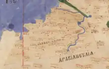 - c. 414: Jerome, Letter 129: Ad Dardanum de Terra promissionis: "You may delineate the Promised Land of Moses from the Book of Numbers (ch. 34): as bounded on the south by the desert tract called Sina, between the Dead Sea and the city of Kadesh-barnea, [which is located with the Arabah to the east] and continues to the west, as far as the river of Egypt, that discharges into the open sea near the city of Rhinocolara; as bounded on the west by the sea along the coasts of Palestine, Phoenicia, Coele‑Syria, and Cilicia; as bounded on the north by the circle formed by the Taurus Mountains and Zephyrium and extending to Hamath, called Epiphany‑Syria; as bounded on the east by the city of Antioch Hippos and Lake Kinneret, now called Tiberias, and then the Jordan River which discharges into the salt sea, now called the Dead Sea."[142][143]