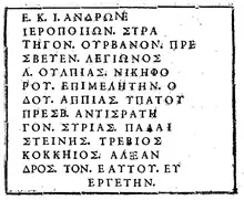 - c. 150 BC: Polemon of Athens, Greek Histories, quoted by Eusebius of Caesarea in Praeparatio Evangelica: "In the time [reign] of Apis son of Phoroneus a part of the Egyptian army was expelled from Egypt, who took up their abode not far from Arabia in the part of Syria called Palestine."[46][47][48]
