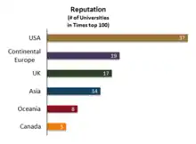 THE Rankings is often considered as one of the most widely observed university rankings together with Academic Ranking of World Universities and QS World University Rankings.[2][3][4][5][6] It is praised for having a new, improved ranking methodology since 2010; however, undermining of non-science and non-English instructing institutions and relying on subjective reputation survey are among the criticism and concerns.[3][7][8]