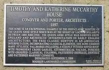 Timothy C. and Katherine McCarthy House plaque, June 2014
