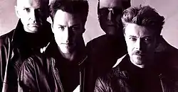 ![]() Tin Machine, 1991 Left to right: Gabrels, Tony Fox Sales, Hunt Sales, Bowie | |