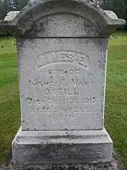 On New Year's Eve 1915, O'Neill died suddenly at age 55 while riding on a Montreal streetcar.[3] The cause of death was an "attack of heart disease."[33] He was buried at St. Mary Cemetery in Woodstock, Ontario.[2]