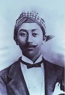 Tirto was born to a priyayi (noble Javanese) family in Blora, Central Java, sometime between 1872 and 1880.[1] He was raised by his grandparents, who had a stressed relationship with the ruling Dutch colonists after Tirto's grandfather Tirtonoto had been deposed as regent by a Dutch-backed man.[2] Despite this, Tirto was able to attend schools for European youth (Europeesche Lagere School) in Bojonegoro, Rembang, and Madiun. He graduated in 1894; that year he began to dabble in journalism, doing some correspondence for the Malay-language daily Hindia Olanda; he did not receive an honorarium, but was given free newspapers when his works were published.[1][3] Tirto continued his studies to the capital at Batavia (now Jakarta), where he chose to study at the School for Training Native Physicians (STOVIA). The choice was unusual for students of noble descent, who usually went to the school for future government employees.[1]