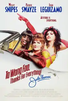 To Wong Foo, Thanks for Everything! Julie Newmar is a 1995 American road comedy film directed by Beeban Kidron and starring Wesley Snipes, Patrick Swayze, and John Leguizamo as three New York City drag queens who embark on a road trip. Its title refers to an iconic autographed photo of Julie Newmar that they carry with them on their journey. She additionally appears in the film as herself.