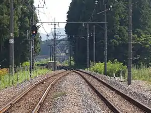 The whole line is electrified at 1,500 V DC, but it is single tracked except for a 0.8 km double-tracked section at Kinugawa-Onsen Station.