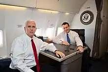 Young planned to vote in support of certifying the Electoral College count on January 6, 2021. Young also said he supported efforts to create a bipartisan "Election Integrity Committee" to review the 2020 presidential election.[44] While entering the US Capitol to participate in the certification on January 6, 2021, Young was accosted by pro-Trump protestors.[45] He was questioned as to why he would vote to support the count, claiming voter fraud.[45] Young explained that “When it comes to the law, our opinions don’t matter — the law matters."[45] The South Bend Tribune's editorial board wrote "Young was right to reject the move that Braun had embraced — but his words should have come two months earlier, not at the last minute. That would have been upholding his duty and fulfilling his oath of office."[46] He was participating in the count when the storming of the Capitol happened. Upon the storming, Todd tweeted "This is not a peaceful protest - it is violence and reprehensible. It must stop."[47] Todd voted in support of certifying the count when Congress was able to return to session.[45] In the wake of the attack, Young would not comment on if he supported using the Twenty-fifth Amendment to the United States Constitution to remove Trump, stating that he trusted the Vice President and Trump cabinet members to "conscientiously and legally carry out their duties until Jan. 20."[48]