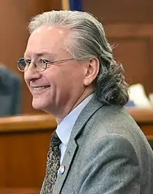 ![]() Tom Begich speaking on the floor of the Senate chamber in the Alaska State Capitol in May 2019 | |