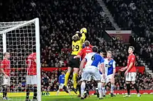 In September 2008, Kuszczak signed a two-year extension which would keep him at Old Trafford until 2012.[11] However, after being overlooked in favour of Foster for the 2009 League Cup Final, Kuszczak faced problems in aiming to become United's new first choice after Van der Sar's retirement and expressed discontent with his situation at Manchester United. In 2009, he was said to be considering his long-term future at the club.[12] Kuszczak kept a clean sheet in his first game of the 2009–10 season, a 1–0 home win over Wolverhampton Wanderers in the third round of the League Cup. After Van der Sar suffered an injury, Kuszczak returned to the side for a match against Portsmouth on 28 November. He retained his position in the starting line-up for United's League Cup fifth round match against Tottenham Hotspur, the next league game against West Ham United and the last game of the Champions League group stage against Wolfsburg. Kuszczak kept another clean sheet in United's final game of the decade as they beat Wigan Athletic 5–0 at Old Trafford. However, Van der Sar's return to the team in January 2010 saw him lose his place in the side. He started, however, in the 2010 Football League Cup Final against Aston Villa, which saw him fail to save a penalty in the first minutes of the game, although United went on to win the trophy, after a 2–1 victory.