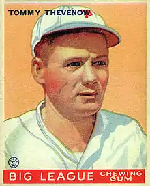 Thomas Joseph Thevenow (September 6, 1903 – July 29, 1957) was an American professional baseball shortstop. He played in Major League Baseball (MLB) from 1924 to 1938 for the St. Louis Cardinals, Philadelphia Phillies, Pittsburgh Pirates, Cincinnati Reds, and Boston Bees. Thevenow epitomized the good-fielding / weak-hitting shortstops that prevailed in the era, ending his career with a fielding percentage of .947, but a batting average of .247 while hitting only two home runs in his 15-year career. He hit two home runs in 1926, both inside-the-park home runs, and then never hit another home run in his next 12 seasons, setting a major league record of 3,347 consecutive at bats without a home run.[1][2]