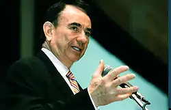 Thompson was criticized when he stated at a Jewish event that he believed earning money is "part of the Jewish tradition." Later at the event he stated that he was not trying to "imply anything about Jews and finances" but that he was "compliment[ing]" Jews for being "outstanding business people." His spokesman later said that he had "misspoke."[16] Despite this setback, the campaign was given a boost later in the month when columnist George Will wrote in an editorial that Thompson was the "Republican presidential candidate with perhaps the most impressive résumé."[17] He finished April campaigning in Iowa continuing with the strategy he planned.[18]
