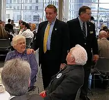 Thompson addressed the monthly meeting of the San Diego Republican Party on July 16,[18] before returning to Iowa on July 19 for the second leg of the "Common Sense Solutions Tour". He campaigned in the state for the next four days before taking a few days off. He returned to Iowa for the third and final leg of the tour on July 28 and remained there until the end of the month.[33] David Wise of Wispolitics.com following Thompson during part of the final leg of the tour. He maintained a blog that described every event attended by Thompson and his interaction with voters. Wise also witnessed a spat between Thompson and fellow presidential candidate Tom Tancredo. Thompson criticized Tancredo for negative campaigning after discovering that he had sent out a mailer that referred to Thompson as a "moderate governor" that supported amnesty for illegal immigrants. He labelled the mailer a "hate piece" put out by "somebody who's way behind and is trying to attack me".[40] At one event, as he countered Tancredo's claims, Tancredo himself entered the building, leading Thompson to point him out. He proceeded to list his accomplishments as governor and remarked "I have been against amnesty my whole career, contrary to what one of my opponents has said."[41]