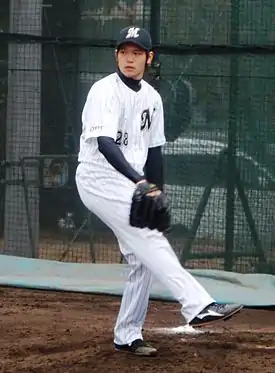 Tomohisa Nemoto (根本 朋久, Nemoto Tomohisa) is a Japanese professional baseball player. He was born on March 21, 1986 in Motomiya, Fukushima, Japan. He played two years for the Chiba Lotte Marines for three years, from 2008 to 2010, and from 2011 on, he has been playing for the Fighters.