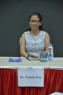 Tongam Rina (born 1979) is an Indian journalist and human rights activist. She is currently (2020) the Editor of The Arunachal Times and president of the Arunachal Pradesh Union of Working Journalists. She has been repeatedly threatened, and in 2012, was near-fatally shot outside her office after she wrote critical articles about corruption, militants and dam projects in Arunachal Pradesh.[1][2][3]